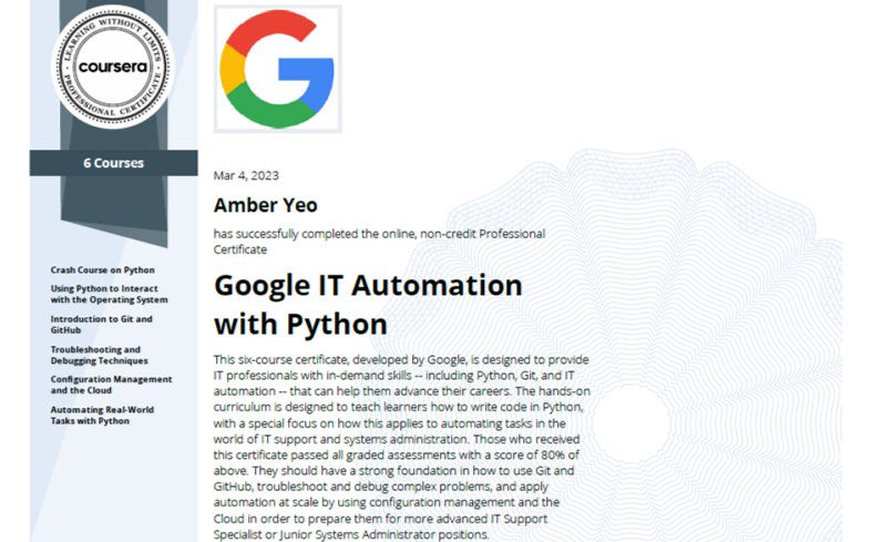 Hi! I am Amber and I'm excited to learn and explore the IT field. It is so exciting to learn new things and master it through constant practice and failures. Failure is no stranger to me. I've learnt to learn from my failures and try to make the best out of every learning experience. During my spare time, I will go dance class to move my stiff bones after a long day of studying and coding.
